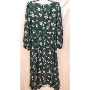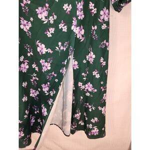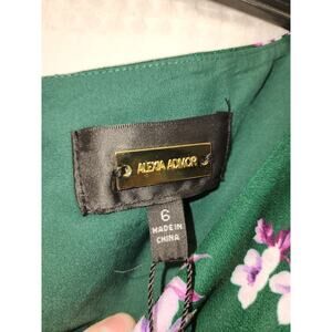 Alexia Admor Bubble Midi Dress Floral High Split Green Size 6 Long Sleeve 3476