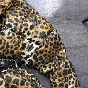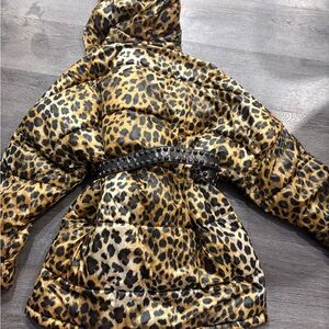 Zara Elegant leopard downfilled coat with leather belt size Med