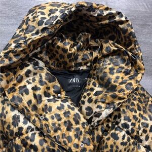 Sophisticated ZARA jacket in classic LEOPARD DOWNFILLED COAT WITH HOOD. Length 40 inches ..Perfect for any occasion.size Med..size Med..