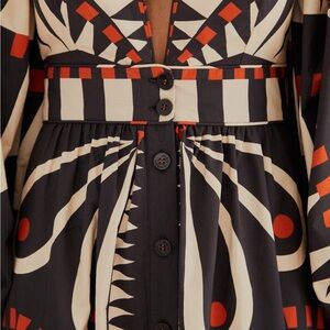 Step out in style with this elegant black and red patterned dress. Perfect for any occasion, this dress combines comfort with a bold design.