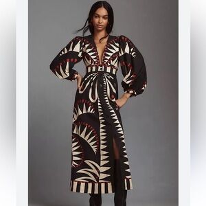 Farm Rio Coconut Grove Puff-Sleeve V-Neck Maxi Dress