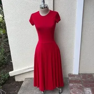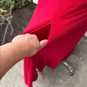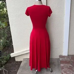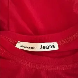 Reformation Jeans beautiful red stretchy dress with great deep pockets. The material is simply beautiful. It’s a gorgeous Tencel blend with a great stretch. The pockets are deep and highly functional. The bottom is beautiful, and flows as you walk. Great dress perfect for any occasion, work, going out on the town, or formal affair. Gorgeous red color. Worn only a few times. First pix stock photo in a slightly different style. See pix for measurements