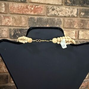 Vintage NOS Wooden Carved Tropical Flower Statement Necklace