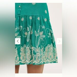 Maeve for Anthropologie Green Pippa Swing Dress. Easy, breezy, and beautiful — this Anthropologie swing dress is the perfect summer-to-fall piece with its embroidered details and effortless fit.