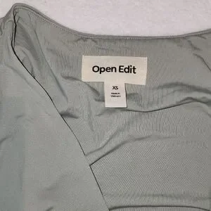 Open Edit Smooth Edit V-neck Bodysuit in Green Halo. Soft, stretchy fabric. Long sleeves. Women's size xs.