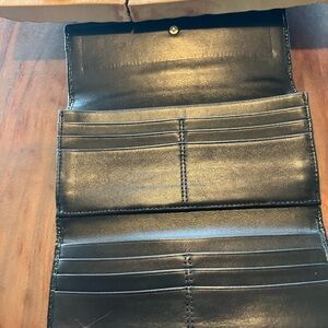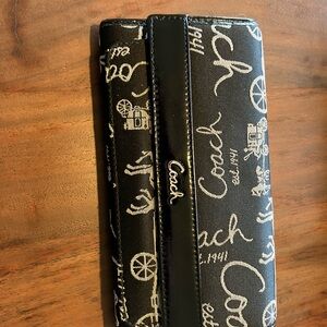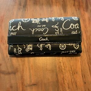 Coach wallet with script pattern. Features classic black and white design.Beautiful Condition!