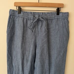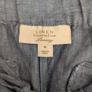 Charter Club Luxury Womens Medium 100% Linen Pants Blue Vacation Resortwear