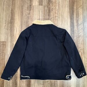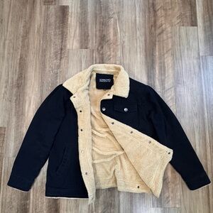 Stay warm and stylish with this black sherpa-lined jacket. Perfect for any occasion.
