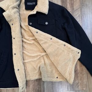 SERREMO Men's Black Sherpa-Lined Jacket, size medium