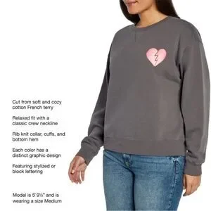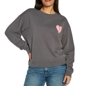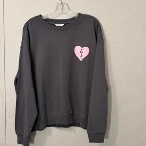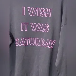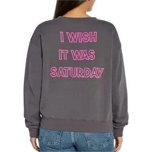 Wildfox I Wish It Was Saturday Grey Sweatshirt Heart Graphic 💔 Size Large