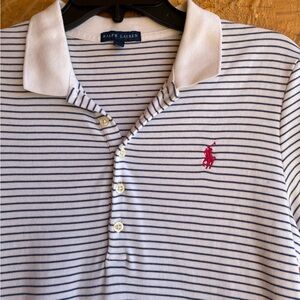 Ralph Lauren White with Navy Stripes Polo Dress with Pink Logo Size Large