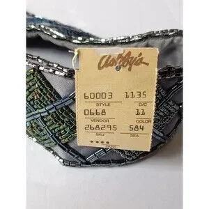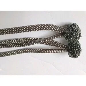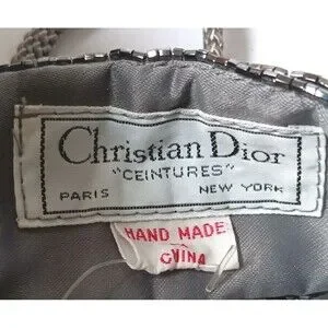 Vintage Christian Dior Ceinture Sash Belt Hand Beaded Grey Satin