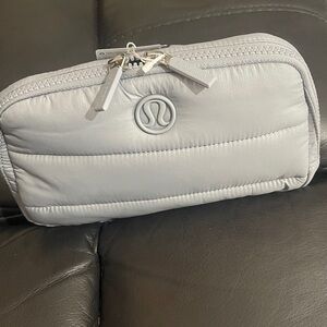 Compact and stylish pouch. Features Lululemon logo. Ideal for essentials. WUNDER PUFF LARGE SIZE NWT LONG STRAP, 9”X 6” size in width and length.