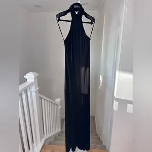Sexy Rachel Pally Black Jersey Knit High Neck Halter Maxi Dress Medium
