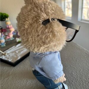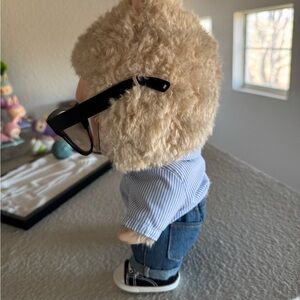 I bought this for myself during the winter, but I don’t have enough room on my shelf for it to stay up there and to be able to see the rest of my decorations. His eyes flip to different colors. He has glasses.