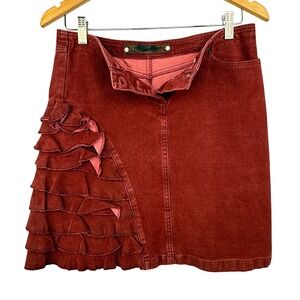 Fornarina Denim Mini Skirt Red Ruffle Button Fly Made in Italy Size Medium