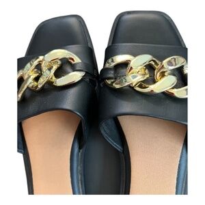 EUC Time & Tru black memory foam slides gold chain | size 7.5