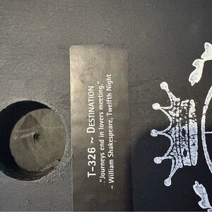 Elegant plaque with a crown motif. Features a quote from Shakespeare. Classic black and white design.