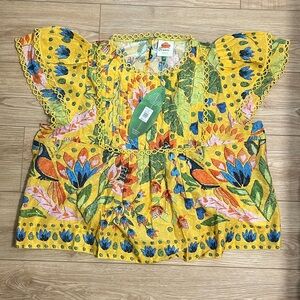 NWT Farm Rio summer garden yellow blouse