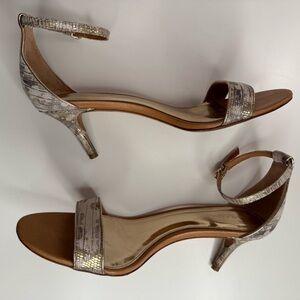 Step out in style with these elegant tan and gold heels. Perfect for any occasion, these shoes offer both comfort and sophistication.