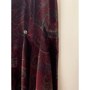 Custom Handmade Button Detail Purple Flair Paisley Velour Print Midi Skirt NWOT
