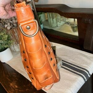 NWOT Bed Stu Orchid Leather Satchel Handbag Crossbody Bag Tan Rustic MSRP $280