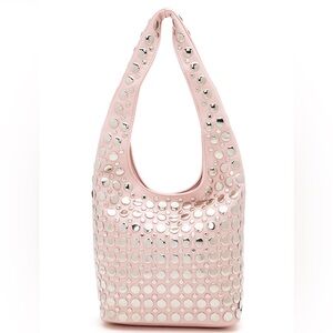 Stylish and chic, this black and silver studded bag is perfect for any occasion. Its unique design adds a touch of glamour to your outfit.