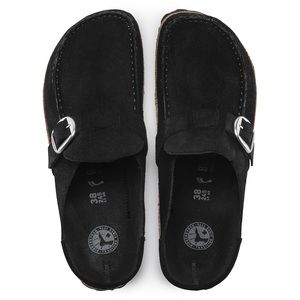 Birkenstock Buckley Mule Clogs Black Suede with Buckle Size-EU-37/US-6-6.5 EUC