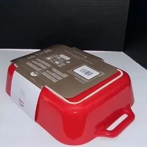 NEW Staub Ceramique Rectan Gratin Baking Dish in Cherry Red Color. This is the harder to find 10.5” X 7.5” Size. Beautiful dish NEW With Tags!