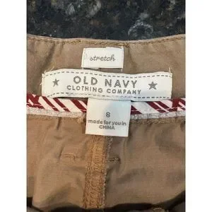 Keywords: Old Navy, mini skirt, size 8, beige, casual, summer, cotton, spandex, stretch, pockets, button closure, machine washable, women's fashion, pre-owned.