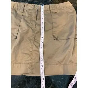 This Old Navy mini skirt in size 8 is perfect for casual summer outings. Made from a comfortable blend of cotton and spandex, it features a solid beige color and a knit fabric with a bit of stretch. The skirt includes practical pockets and a button closure. Ideal for casual occasions, it pairs well with a variety of tops for a relaxed look. The skirt is machine washable for easy care. It is pre-owned with light wear.