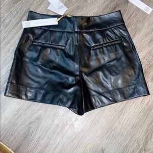 Chic vegan leather crop top/bralette and shorts set. Sleek and modern design. Ideal for stylish outings.
