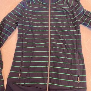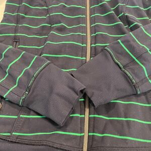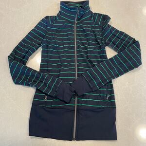 Lululemon women's striped athletic zip jacket size 4 navy green full zip workout
