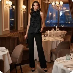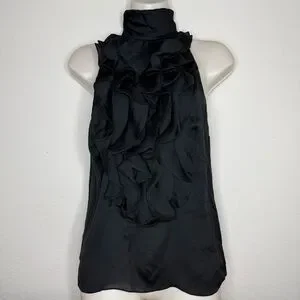 New Ralph Lauren black label Silk black top halter neck rufle sleeveless