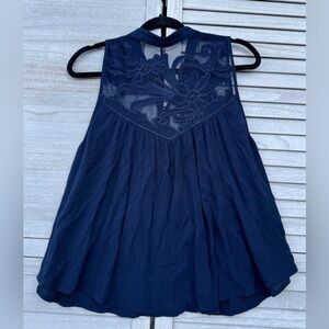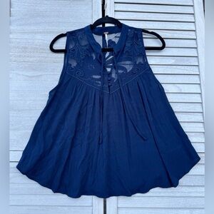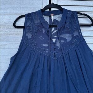 Free People blouse, Free People embroidered top, navy blue boho blouse, Free People tank top, bohemian blouse women, embroidered tunic top, size medium blouse, flowy boho top, festival style top, relaxed fit blouse, summer boho top, casual chic blouse, boutique style top
