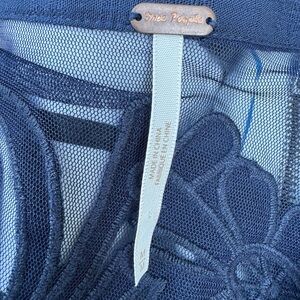 Free People Navy Blue Embroidered Blouse. Size Medium. Great Condition