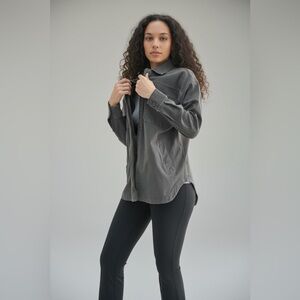 Oversized Full Zip Cargo Pockets Grey Twill Shacket