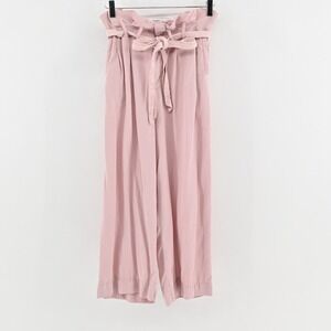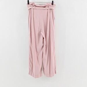 Anthropologie Womens Paperbag Pants Size 0 Pink Belted Wide Leg Cotton