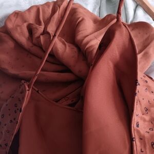 Whistles Rust Polka Dot Satin Bias Cut Slip Midi Dress Spaghetti Strap US 6