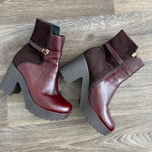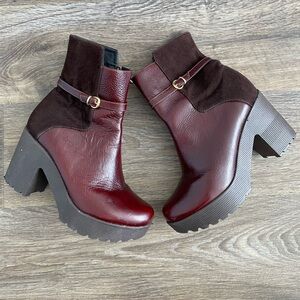 Oxblood 90s Leather Chunky Platform Lug Block Heel Ankle Boots Size 37 7 Retro