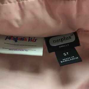 Patagonia hi loft down puffer jacket, size 5T. EUC. Two very tiny spots shown in photos. Some darker feathers show through pink.