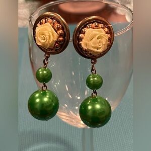 Beautiful green/flower drop earrings