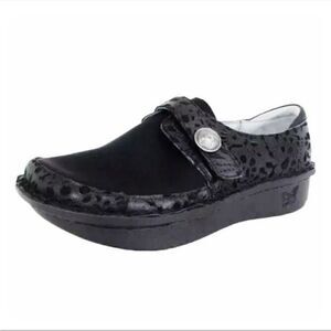Alegria Den 435 Women's Black Embossed Leather Neoprene Comfort Shoes Clog