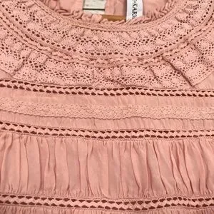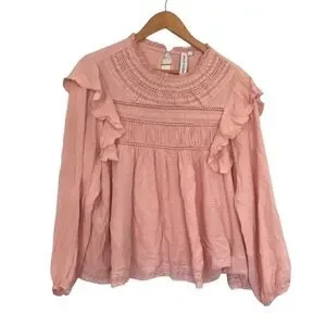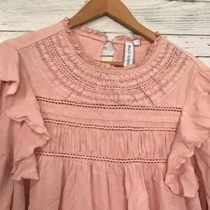 Grace + Karma ruffle crochet babydoll bohemian shirt size L loose fit pink