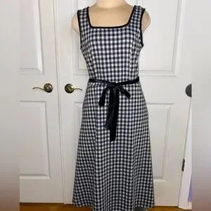 Draper James RSVP Gingham Dress Medium – Sleeveless Square Neck Tie Waist Pockets