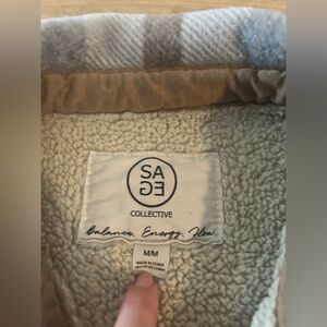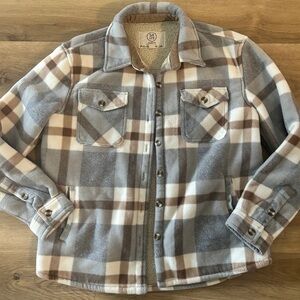 Sage Collective Plaid Sherpa Lined Shacket Jacket Gray Brown, Size M, EUC