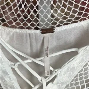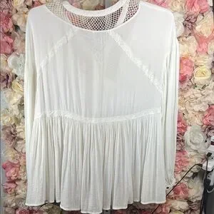 Chic cream blouse with lace-up front. Flowy design with delicate details. Perfect for casual elegance.