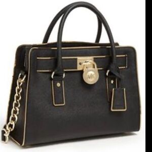 Elegant black handbag with gold accents, perfect for any occasion. Features a stylish design and premium craftsmanship.preloved and fair condition
