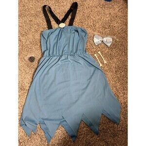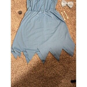 Flintstones Wilma Pebbles Costume Blue Dress Bow Bones Halloween Adult Large NEW