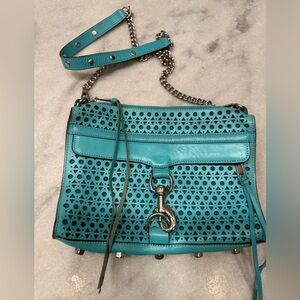 Rebecca Minkoff teal mint shoulder bag cross body. Comes with dust bag. Small imperfection on front of bag not very noticeable. I think it’s just a color transfer from something that is was next to. Great condition.